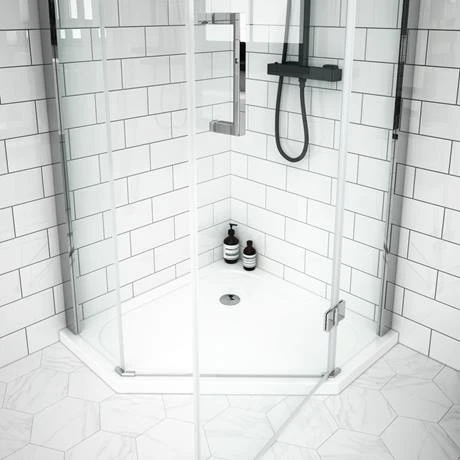 Increase the sense of space in your bathroom with the Apollo Frameless Pentangle-shaped Enclosure. This compact shower cubicle is just 780mm wide, making it perfect for smaller rooms. Featuring frameless 6mm-thick safety glass panels and a chrome-plated handle and door hinges, this contemporary shower unit will achieve a sleek, minimal presence in your bathroom. Its lightweight and durable acrylic-capped shower tray is also resistant to shrinkage, warping and twisting.