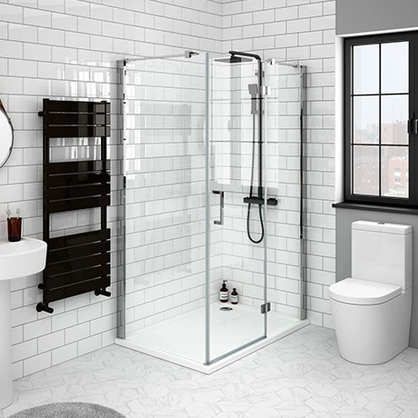 Create a minimalist showering space with this modern Apollo Rectangular Shower Enclosure. It offers plenty of room for washing or hanging a shower basket for your toiletries. This piece is available in many sizes, so you can choose an option to fit your home. The toughened safety glass door of this frameless shower enclosure opens smoothly outwards on chrome plated brass hinges, with a square chrome handle to complete the contemporary look. Need somewhere to stand your shampoo and scrub? Try the Aurora Slate Effect Shower Tray to make a bold design statement.