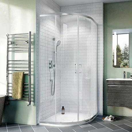 The Kai 6 Quadrant Double Door Shower Enclosure offers modern design and outstanding value for money. Equipped with quick release double rollers and Crosswater Clear as standard. It’s gently contoured silver anodised aluminium profiles with 6mm toughened glass offer plenty of adjustment for easy fitting.
