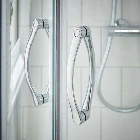 Step into a spacious shower with the Newark Offset Quadrant Enclosure. Framed by elegant curving doors, this shower cubicle creates a soft contour in your bathroom, harmonising the space. Fit this corner shower easily to left- or right-hand shower trays thanks to the fixture’s practical reversible design. Toughened 5mm glass ensures durability and safety. This stylish shower enclosure is finished with satin chrome frames for timeless appeal in your bathroom.