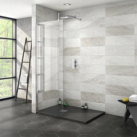 The luxury Nova frameless wet room enclosure features a 8mm thick clear glass panel, ideal for creating a minimalist stylish showering area in your bathroom. Supplied with a textured graphite slate effect rectangular shower tray with a sleek ultra-low profile which provides ample space to wipe down after a shower.