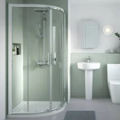 The Nova Frameless Shower Enclosure is ideal for en suites and smaller bathrooms. Designed in a quadrant shape, this corner shower cubicle features sliding doors on a brass roller, maximising space in your room. Its contemporary frameless design creates a minimalist look, bringing a sense of open space. Available in three sizes, this stylish corner shower solution comes with 8mm tempered glass for durability and safety. Sleek chrome handles provide the perfect modern finishing touch.