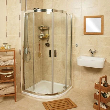 The stunning Embrace Quadrant featuring a twin door opening for where central access into the showering area is more practical. The stylish twin doors are ideal when space is at a premium as they do not project out into the surrounding showering space.